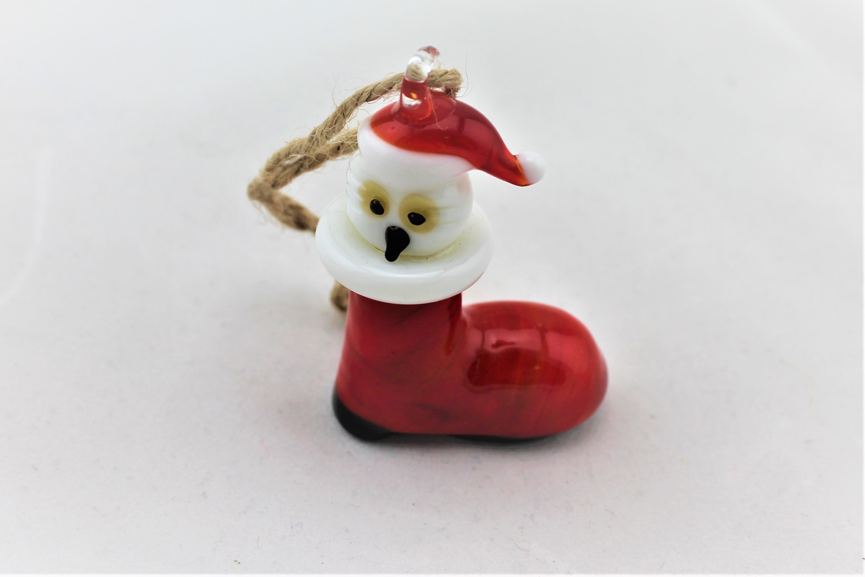 Eule im Weihnachtsstiefel zum Hängen