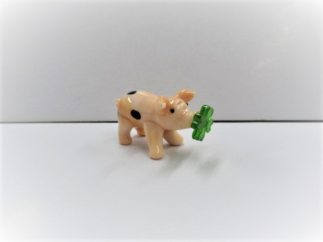 Glasschwein mit Kleeblatt im Mund